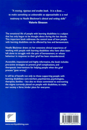 Noelle Blackman trained as a dramatherapist at St. Alban's College of Art and Design (now the University of Hertfordshire) in 1994. She set up the roc Loss and Bereavement Service for people with learning disabilities in 1997 and is a co-ordinator of the GOLD group (Growing Older with Learning Disabilities), part of the Foundation for People with Learning Disabilities UK. She organised national conferences on dying, loss and bereavement for people with learning disabilities in 1999 and 2000, and has presented numerous papers on the subject. She is the editor of Living With Loss (Pavillion, 1999).